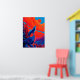 A dramatic expressionist wolf standing on a mountain peak beneath a glowing crimson moon. Bold colors and dynamic skies create a powerful symbol of strength, freedom, and wilderness spirit. Ideal for modern home decor, rustic interiors, and meaningful gifts for nature and wildlife lovers.