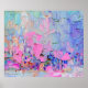 Expressive embossed paint on canvas, created using palette knife technique of oil painting. Primary colours: purple, white, turquoise, blue, pink, violet.