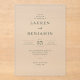 This elegant wedding invitation features a minimalist and sophisticated design, perfect for couples who appreciate understated elegance. The clean layout with simple typography exudes a timeless charm, while the soft color palette creates a serene and inviting atmosphere. Ideal for a classic or modern wedding celebration, this invitation sets the tone for an intimate and refined event. With customizable text areas, it allows you to personalize every detail, ensuring your special day is captured in style.