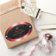 The design features a noble shimmering red frame with fine decor lines, on a plain black background.
