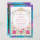 Exquisite Colorful Spanish Mexican Inspired Floral Border Embroidery Style Quinceañera Invitation Cards with Back Photo.