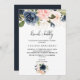 This exquisite fall brunch and bubbly bridal shower invitation is perfect for a tropical wedding shower. The design depicts hand-drawn pink blush, dark blue and navy whimsical flowers, inspiring elegance, class and natural beauty.