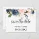This exquisite fall floral save the date card is perfect for a tropical wedding. The design depicts hand-drawn pink blush, dark blue and navy whimsical flowers, inspiring elegance, class and natural beauty.