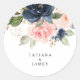 These exquisite fall floral wedding envelope seals are perfect for a tropical wedding. The design depicts hand-drawn pink blush, dark blue and navy whimsical flowers, inspiring elegance, class and natural beauty.