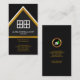 An elegant simple design in a black cover. Card features a faux gold home with french windows ; it is within the confines of this space, you find your name and job title. Directly underneath are your slogan option and contact details.