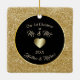 This is a simple, yet elegant ornament to show off your favourite picture of the two of you for your 1st Christmas together. The front features your photograph inside a circular shiny gold lined frame with a jewel like gold glitter background. The back has the same frame with a black interior, your custom text in pale gold, and a shiny gold heart. Make it say whatever you'd like!