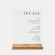 This elegant wedding menu design exudes a sophisticated and minimalist style, perfect for a modern and chic celebration. The clean typography and simple layout focus on the essential details of beverages available at the bar, including beer, wine, and spirits, creating an inviting atmosphere for guests to enjoy their drinks. With its understated color palette featuring soft greens and whites, this design conveys a sense of refinement and timeless elegance, making it ideal for couples who appreciate simplicity and class in their special day.