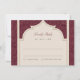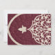 This RSVP card is a work of art, blending the timeless elegance of Islamic architectural motifs with the grace of traditional calligraphy. The design boasts an exquisite archway, flanked by patterned columns and a captivating scrollwork that frames the space for guests to respond. Presented in a harmonious colour scheme this card is both a respectful nod to tradition and a sophisticated choice for modern nuptials. Each element, from the ornate florals to the geometric chevrons, is thoughtfully placed, creating a sense of balance and beauty that is sure to delight recipients and set the tone for a day of joyous celebration.