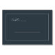 This elegant wedding place card design features a minimalist and sophisticated style, perfect for creating an understated yet refined atmosphere at your special event. The dark navy background provides a luxurious contrast to the delicate white script typography, which adds a touch of timeless elegance. With clean lines and ample space for customization, this design is ideal for couples who prefer a modern and chic aesthetic. It’s versatile enough to complement various wedding themes while ensuring that each table setting exudes grace and simplicity.