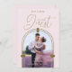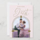 Available in both physical and digital formats, this card offers versatility in sharing your excitement. The physical version presents a meticulously crafted card on high-quality paper, highlighting the intricate pink arch and personalized initials, creating a captivating visual delight. On the other hand, the digital variant provides a convenient way to swiftly share the exciting news via various digital platforms.