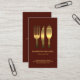 A simple dark maroon cover with a set of faux gold eating utensils at the centre of the card. Below this are your prestigious name, job title and contact details.