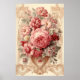 Exquisite Vintage Shabby Chic pink rose adorned with delightful little pink and red petals, against an intricate decorative background.