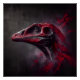 An abstract portrait showcasing the head of an extinct dinosaur. Painted with red and charcoal colours in an artistic style, this captivating artwork unfolds against a dark shady background. Witness the beauty in the mysterious echoes of the past in this very captivating piece.