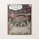 A jigsaw puzzle with a funny cartoon about extinct dinosaurs coming back to life. The image, background and text may be personalised. Original artwork by DBcartoons.