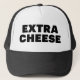 EXTRA CHEESE fun and ironic slogan on trucker hat, black, funny typographic statement, inspired by tv comedy character frank rossitano. always.