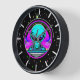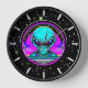 Neon psychedelic art depicting an alien and flying saucer. Generative content.