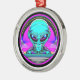 Extra Terrestrial Alien Flying a UFO Metal Ornament
