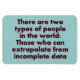 This reads, "There are two types of people in the world: Those who can extrapolate from incomplete data"