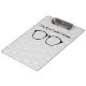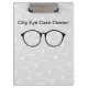 Eyeglasses theme business clipboards with eyeglass pattern lightly printed in the background and a dark pair and company name you can replace with your own business name or professional name in its place. Created for an Eye Doctor, eye care centre, or Optometrist.