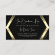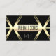 Make a lasting impression with this eye catching and elegant business card design featuring modern black geometric graphics with light gold shimmer background.