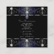 Make a lasting impression with this luxurious and elegant business card design featuring fine filigree ornate ornaments with diamonds and sparkling stars. The borders are shimmery blue with silver decor on a black background.