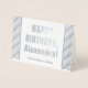 This eyecatching, eye-catching silver foil birthday greeting card design features the message "HAPPY BIRTHDAY" on the front, and a name that can be personalised. There is a customisable message on the inside. It could be given to celebrate somebody’s birthday.