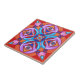 This square mandala is the 18th in my "Time Out" series. Various geometrical shapes form an abstract flower with stylised eyes in the petals. Its dominant colours are lilac, orange, red, sky-blue, dark blue and yellow. It has a warm mediterranean touch.