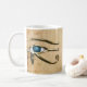 An ancient Egyptian symbol, The Eye Of Horus. Here it represents his left, blue eye - considered by many to be a good luck charm for attracting health and power.