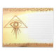 The Eye of Providence, or the all-seeing eye, is a symbol showing an eye often surrounded by rays of light or a glory and usually enclosed by a triangle. Imagery of an all-seeing eye can be traced back to Egyptian mythology and the Eye of Horus.It also appears in Buddhism, where Buddha is also regularly referred to as the "Eye of the World" throughout Buddhist scriptures (e.g. Mahaparinibbana Sutta) and is represented as a trinity in the shape of a triangle known as the Tiratna, or Triple Gem. In Mediaeval and Renaissance European iconography, the Eye (often with the addition of an enclosing triangle) was an explicit image of the Christian Trinity. Seventeenth-century depictions of the Eye of Providence sometimes show it surrounded by clouds or sun bursts. Today, the Eye of Providence is usually associated with Freemasonry. The Eye first appeared as part of the standard iconography of the Freemasons in 1797, with the publication of Thomas Smith Webb's Freemasons Monitor.Here, it represents the all-seeing eye of God and is a reminder that a Mason's thoughts and deeds are always observed by God (who is referred to in Masonry as the Great Architect of the Universe). Typically, the Masonic Eye of Providence has a semi-circular glory below the eye. Sometimes the Eye is enclosed by a triangle. Popular among conspiracy theorists is the claim that the Eye of Providence shown atop an unfinished pyramid on the Great Seal of the United States indicates the influence of Freemasonry in the founding of the United States. This was dramatised in the 2004 film National Treasure. However, common Masonic use of the Eye dates to 14 years after the creation of the Great Seal, and the Masonic version does not incorporate a pyramid (although the enclosing triangle is often interpreted as one). Furthermore, among the three members of the original design committee for the Great Seal (or any of the ones that followed it), only Benjamin Franklin was a Mason (and his ideas for the seal were not adopted). Indeed, many Masonic organisations have explicitly denied any connection to the creation of the Seal