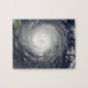 An overhead satellite view of the eye of the Category 5 hurricane Isabel in the North Atlantic north of Puerto Rico in September of 2003.