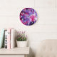 10.75” round acrylic wall clock with an image of colourful light radiating from an Eye of the Storm globe.