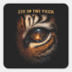 A fierce tiger’s gaze reflects fire and jungle, symbolizing primal strength, focus, and unyielding survival.
