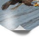 A bald eagle and the fish in it's talons lock eyes just after the capture.