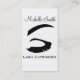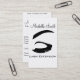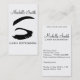 Business card with a drawing of eye with long lashes and eyebrows of female face in white and black. Perfect for your company promotion. Suitable for make-up artists, eyelash extension services, lash tinting and waxing services, brow tinting services, henna tattoos, permanent makeup, estheticians, beauticians, stylists, spa salon, hair and beauty salon or model agency. Customisable.