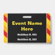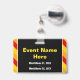 This eyecatching badge design features the message "CONFERENCE OFFICIAL". It also features eye-catching yellow, red and orange coloured stripes. The back features a customisable event name and event date(s). [~Z0000286]