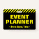 This attention-grabbing badge design features the message "EVENT PLANNER". A badge like this could perhaps be used to identify that the wearer is an official at an event. [~Z0000307]