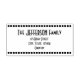 This basic rubber stamp design features a personalised family name plus a personalised mailing or house address. It also features a row of square shapes. An interesting font is used for the text.