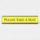 This eyecatching design features the message "Please Take A Seat". This could be used in a seating lounge to inform patients, visitors or clients that they will be served shortly, and that they should have a seat until then.