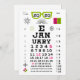 Look before you leap year with this fun, eyechart-themed design! Inspired by the charts and tests you'd see on the wall at the eye doctor's office, this card features a stylised January 2020 calendar and the phrases "Happy New Year" and "Look Before You Leap." With its bright colours and bold graphics, this card can be sent as New Year's greetings, used as a calendar or hung as art all year long!
