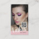 Modern networking QR code business card with 2 photos for makeup artist, hair stylish, lashes or nails extensions small business. This trendy chic cosmetologist scannable barcode business card is a good way to promote and engage with your customer by sharing more info about your business using the QR code, connect to your social media or add your logo for branding purpose.