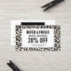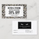 Coordinates with the Eyelashes with Leopard Print Business Card Template by 1201AM. Update the promotion text for your desired offering. Generate more sales and visits by encouraging your customers to refer their friends for a discounted service or free product. Great for lash extension salons, lash bars, makeup artists and more. Art and design © 1201AM Design Studio | www.1201am.com