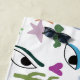 Abstract eyes art, foliage, hearts beach towel custom background.