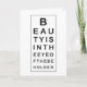 Eyetest design which reads "beauty is in the eye of the beholder" and line inside reads "...and my eyesight is 20/20"