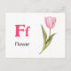 "Letter F is for Flower" in our Alphabet Flash Card set. Get all 26 letters of the alphabet! A double-sided postcard that is great for memory games and teaching, geared for education, schools, teachers and homeschoolers for kindergarten and babies. All text is editable if you need to customise.