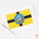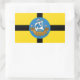 Sticker with a design with the flag of Wellington City, New Zealand. A yellow flag with a black cross and the seal of the city with an image of a ship in the centre