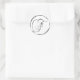 F Monogram Faux Silver Envelope Or Favour Seal. These classic round stickers are printed with non metallic ink on a flat sticker to look like silver. They are not beveled or embossed monograms but are designed to look like they are beveled or embossed monograms. These silver monogram seals are printed on a white background unless you select a different colour background before you proceed to checkout. In addition to being pretty wedding stationery supplies, these elegant wedding invitation envelope seals also make great monogrammed custom Christmas card seals, personalised holiday greeting card envelope seal stickers and customised Xmas card monogram seal stickers.