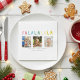 "Fa La La" in colourful pastel typography Christmas paper napkins with 3 photo collage.