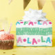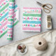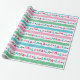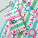 A little retro and a little kitschy, this whimsical wrapping paper feature colourful Christmas garlands. Alternating garlands spell out "fa la la". Colours include: blue, red, pink, green. On white. Comes in a continuous roll.
