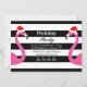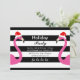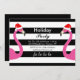 Two cute pink flamingos wearing Santa hats on a black and white striped background, decorate this fun holiday party invitation. Additional coordinating items can be found in the Fa la la la Flamingo Holiday Collection.