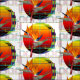 Bird of paradise flower (Strelitzia) plant on geometric sunset. Designed by Sequin Dreams Studio.